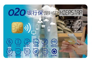 O2O银行保是海博智能自主研发、设计、生产的具有超强应用功能的可视金融IC卡产品。本卡集成了可视窗口,智能芯片,以及功能键盘。通过本卡,用户可以实现电子现金余额查询、交易记录查询、动态口令认证、电子签名、U盾加密以及商户积分查询等。同时,本卡也是一张多功能的社保联名卡,可以将用户的五险一金集合到本卡中,实现部分金额的电子支付,并查询五险一金的余额。万卡合一,是将各种线下的支付卡、消费卡、会员卡、交通卡,以及线上的消费码、代金券、团购券都集合到一起,通过O2O银行保的卡面视窗,来显示余额和使用情况。